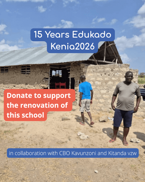 This summer 2026, Edukado vzw CBO Kavunzoni and vzw Kitanda, together with around 7 volunteer students will renovate a school in Kavunzoni, Kenia. This will give more than 50 children the chance to go to school, every year, which is what Edukado stands for: giving everyone a fair chance at education. Our target amount of €12 000 will be used to cover all construction costs of the classrooms. Every donation is welcome! Through this page, you can donate 10EUR. Kind regards, The Kenia 2026 Volunteer Team
